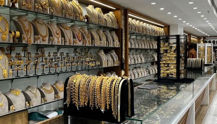 [ad_1] An undated image of gold jewellery showcased in a jewellery store. โ AFP/File Gold price in Pakistan witnessed a decline on Saturday as per tola price of yellow metal declined by Rs2,500 amid nominal increase in the international rates….